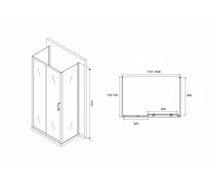 Артикул душевого уголка Abber: AG30180B-S75B-S75B