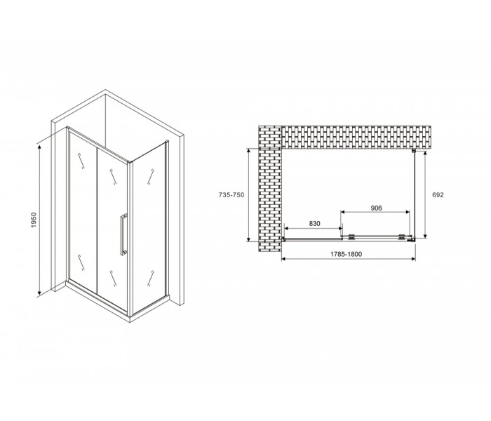 Артикул душевого уголка Abber: AG30180BH-S75B