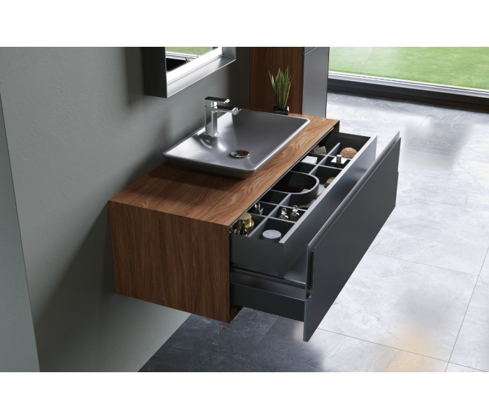 коллекция Craft, производитель Турция, гарантия 2 года, система хранения - ящики, система доводчиков - есть, материал раковины - керамика, подсветки нет, цвет орех/антрацит, материал фасада МДФ, материал корпуса МДФ, материал столешницы - МДФ, антрацит матовый, стиль - современный