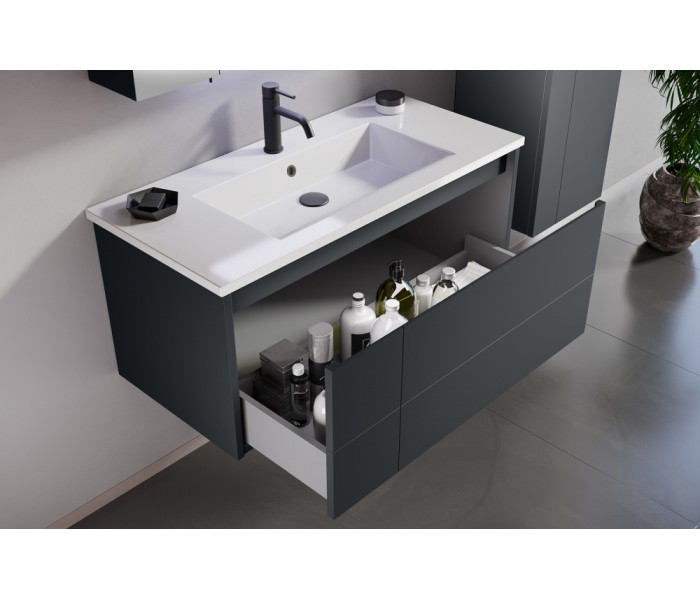 коллекция Likya, производитель Турция, гарантия 2 года, система хранения - ящики, система доводчиков - есть, материал раковины - керамика, подсветки нет, цвет антрацит матовый, материал фасада МДФ, материал корпуса МДФ, , цвет раковины белый, стиль - современный
