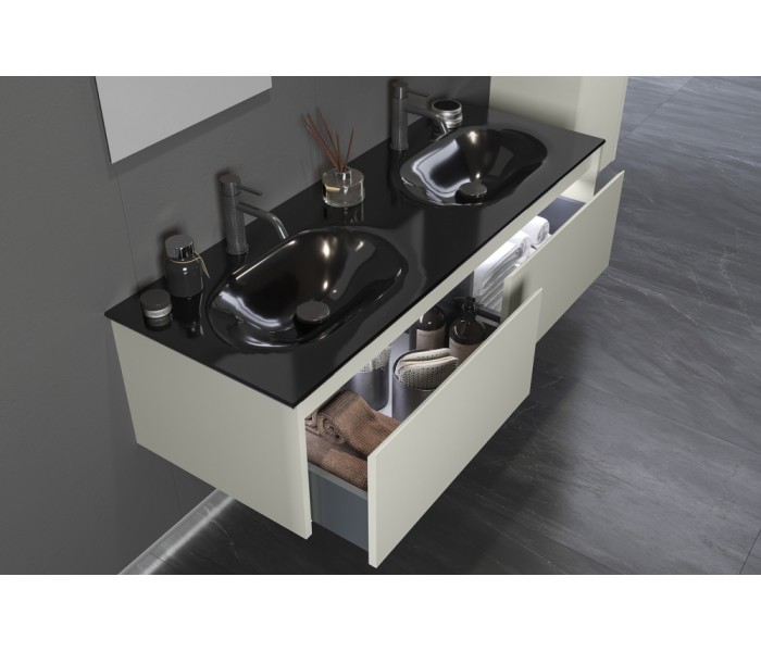 коллекция Lisbon, производитель Турция, гарантия 2 года, система хранения - ящики, система доводчиков - есть, материал раковины - стекло, подсветка есть, цвет кашемировый матовый, материал фасада МДФ, материал корпуса МДФ, материал столешницы - стекло, цвет раковины темно-серый, стиль - современный