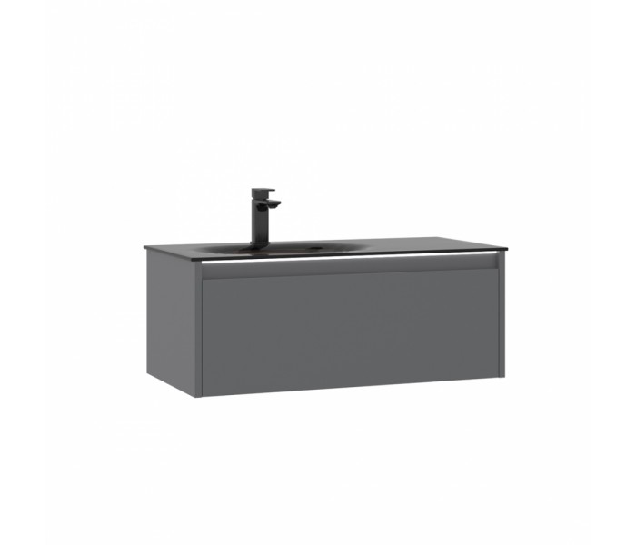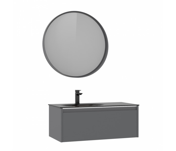 коллекция Lisbon, производитель Турция, гарантия 2 года, система хранения - ящики, система доводчиков - есть, материал раковины - стекло, подсветка есть, цвет серый матовый, материал фасада МДФ, материал корпуса МДФ, материал столешницы - стекло, цвет раковины темно-серый, стиль - современный
