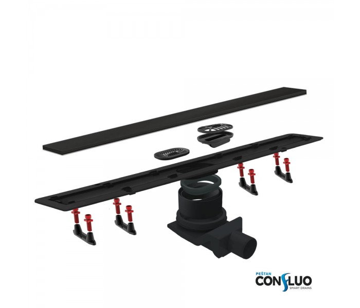 1. Душевой трап – 1 шт. 2. S-образные сифон3. Опоры для регулировчки высоты4. Переходник с уплотнительной резинкой5. Грязеулоавливающая сеточка6. Сухой затвор7. Дизайн вставка8. Устройство для снятия решетки – 1 шт. 9. Набор крепежей – 1 компл. 10. Гидроизоляционная лента MAPEI – 1 компл. 11. Защитный элемент на время монтажа – 1 шт. 12. Инструкция по монтажу – 1 шт. 13. Гарантийный талон – 1 шт. 14. Упаковка – 1 шт.