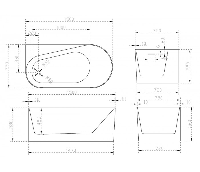 Акриловая ванна ABBER AB9496-1.5 L