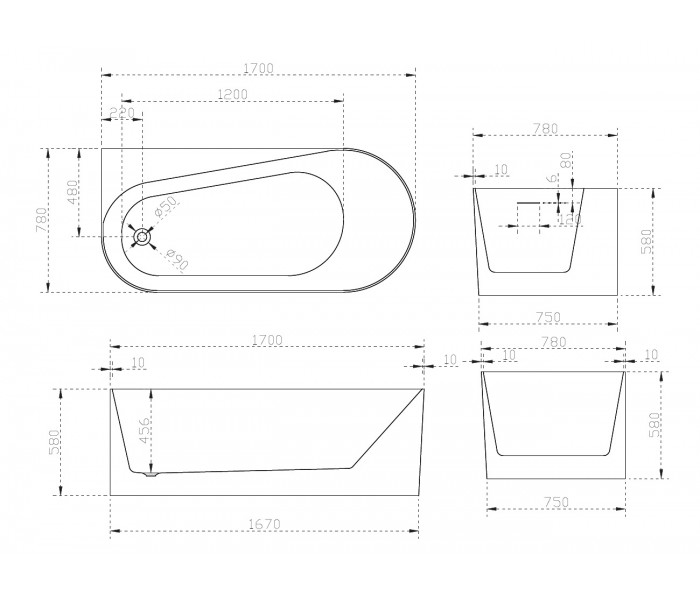 Акриловая ванна ABBER AB9496-1.7 L