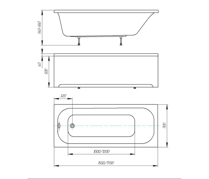 Ванна Акватек Lifestyle Лугано 170х70 акрил LUG170-0000001